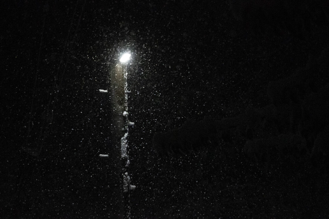 夜から降り出した雪は小一時間程で5センチほど積もってきました。雪が降ればそわそわし出すのが写真屋の悪いクセ。真夜中にも関わらずカメラを持って近所をうろうろ。見方によれば…明けた翌日は時折晴れ間が覗く曇り空なので、小さな川…