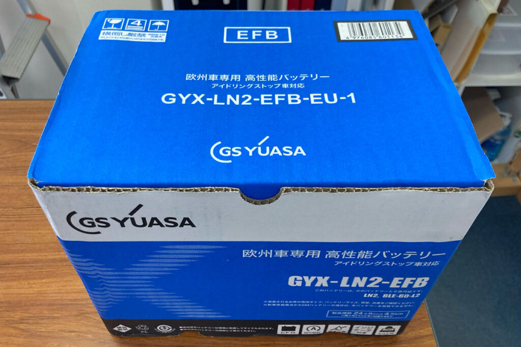 今回の交換用のバッテリーはユアサバッテリーのGXY-LN2-EFB-EU-1(欧州車用・アイドリングストップ対応)をチョイスしました。元のボッシュ製でも良かったのですが、9月に新製品が出るとの案内がありましたのでユアサ製を選びました。