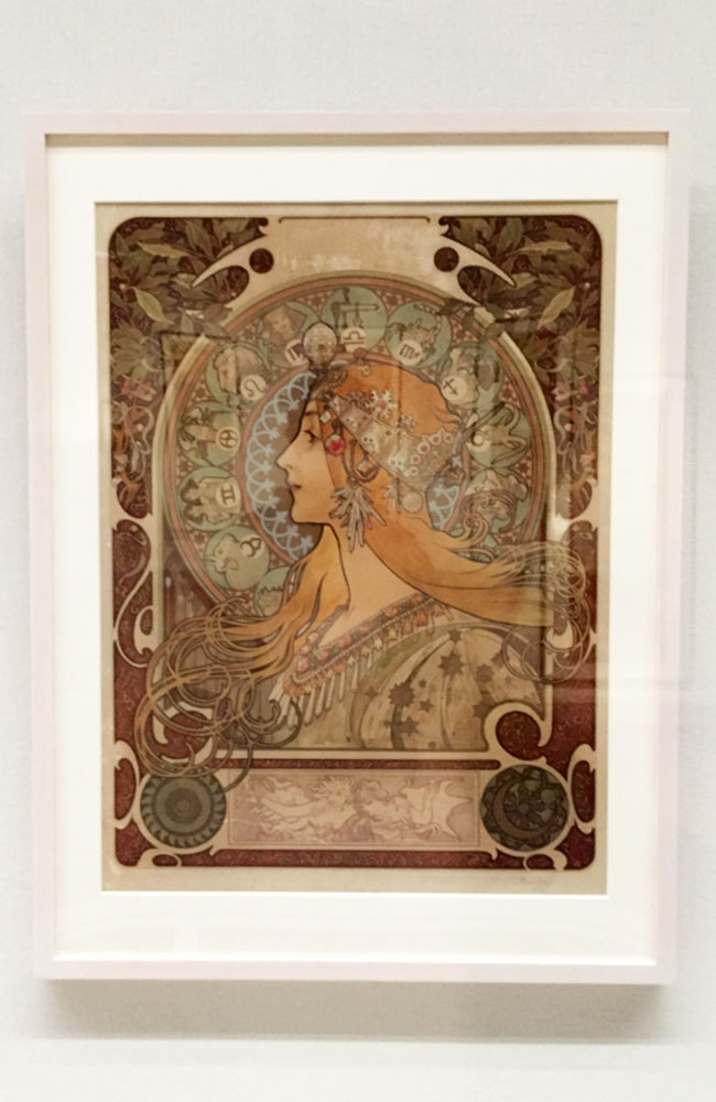 ロートレックの作品から始まり、氏の作品に少し疎い私でも何処かで見たことがある作品が続く。作品の中でも「悦楽の女王」などは試し刷りが同時に並べられ、紙と印刷を好む私としては非常に嬉しく興味が湧く展示となっています。これはミュシャの作品でもあり、絵のみ・絵と演劇タイトル・絵と演劇内容の様に時期が進む事や、出す場所によって行われた変更が同時に見比べる事ができました。1895-1897年の展示ではロートレックの「54号室の女性船客」ミュシャの「愛人たち」「ジョブ」などの私が好きな作品が並びます。中でも「黄道十二宮」はエンジニアを目指していた私を美術の世界に引き戻した作品であり、何度見てもこの絵のバランス、情報の多さには圧巻させられます。
