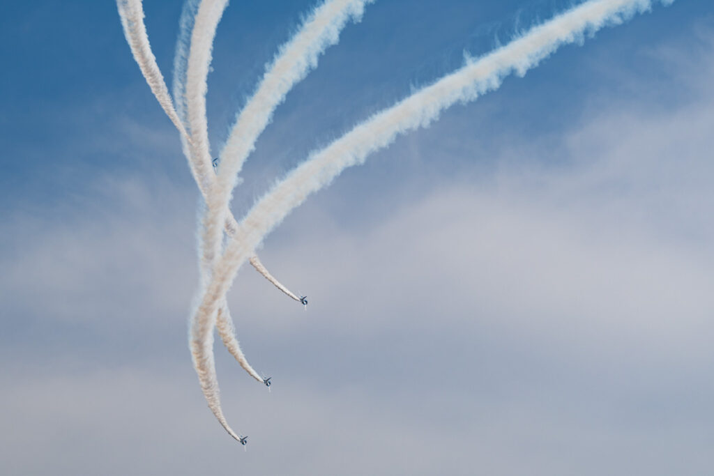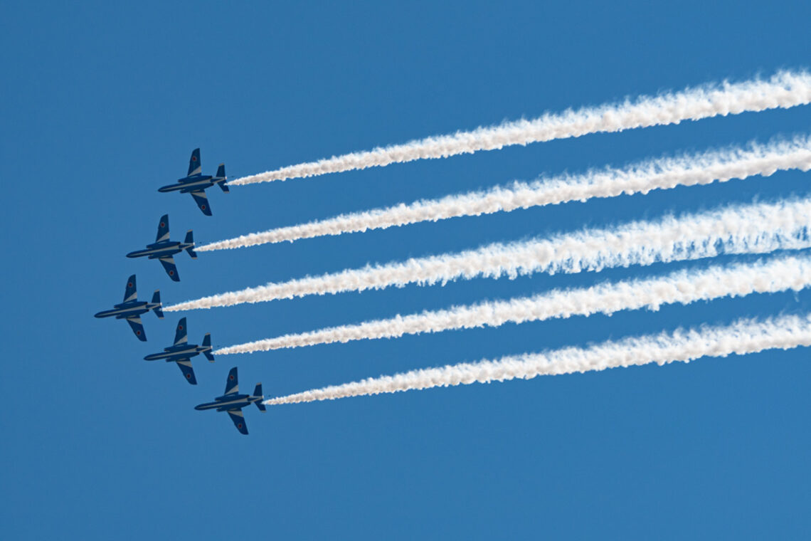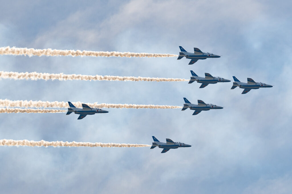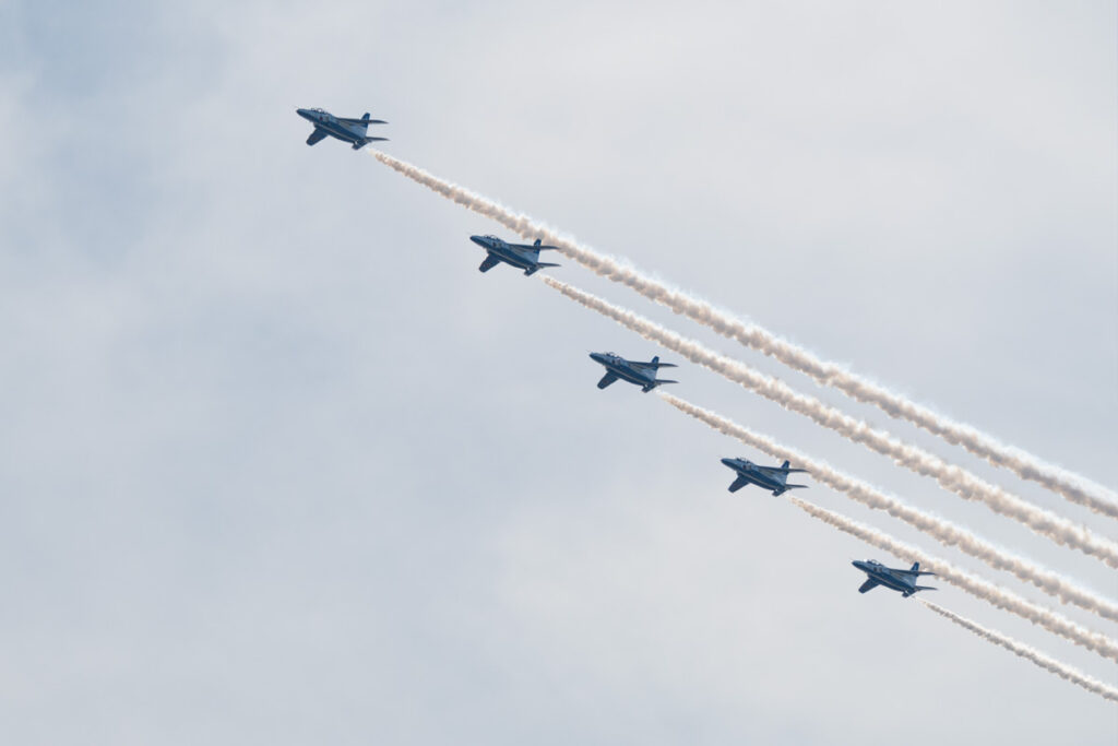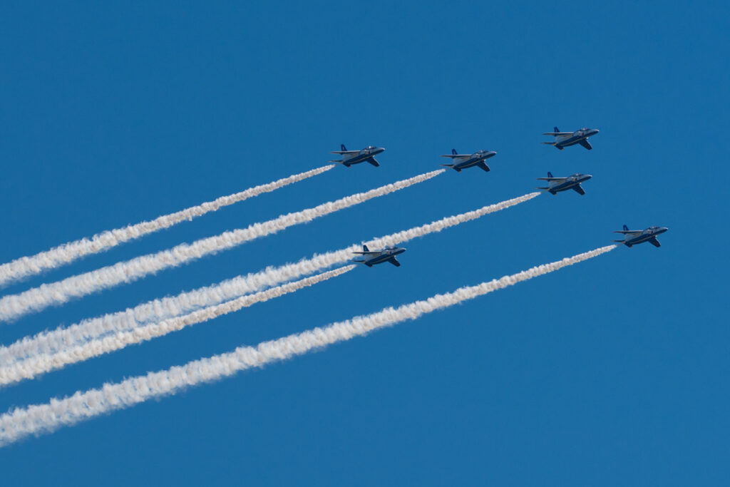 自衛隊ブルーインパルス 滋賀国体閉会式 2025年10月8日 /所々雲はありますが青い空が広がる絶好のブルーインパルス日和の日。もちろん午前中に有給を確保し、カメラを持って彦根へ向かいました。しかし、展示飛行時間は3分。前日に飛行ルートの情報も無しの状況でいったい何をするのか?そして何処を飛ぶのか?と何もわからない。前日に行われた予行の情報もあったけど何処で撮影をするのがいいのかむむむ…となり、絵としては彦根城を絡めて撮りたい。しかしルートが違えば何処にも展開出来なくなる。何処にすると悩みながら無難に何処を飛んでも見れる場所に陣取りました。