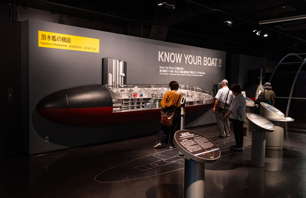資料館の中は海上自衛隊の歴史や掃海活動について、潜水艦の活動がパネルや実際に使用されていた物を使って説明されています。また潜水艦の船員室では実際に潜水艦の隊員が使うベットを体験でき、その狭さが体験できます。最後には外からも見える潜水艦あきしおの中を見学する事ができ、潜望鏡を使って周囲を偵察する事もできます。