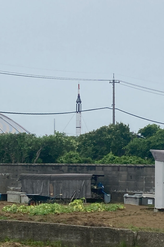 JR羽咋駅から案内看板に従って歩いていると遠くに見えるは…これは、ケープカナベラルの森の向こうに見える発射台の様な景色。テンションは徐々に上がっていきます。