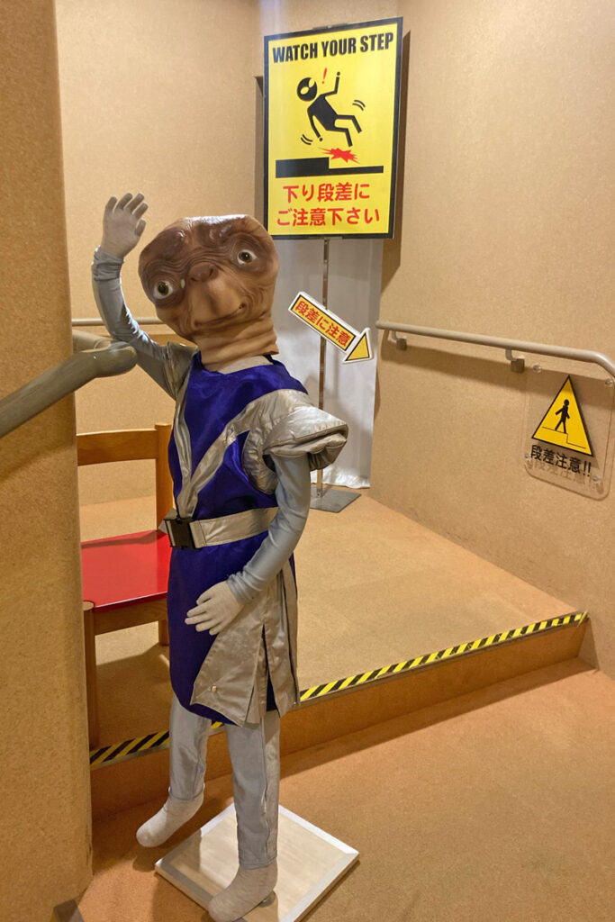 館内のシアターへ繋がる階段には、地球で最もメジャーな宇宙時のETが来場者をお出迎え。でもETってこんなに身長高かっただろうか?