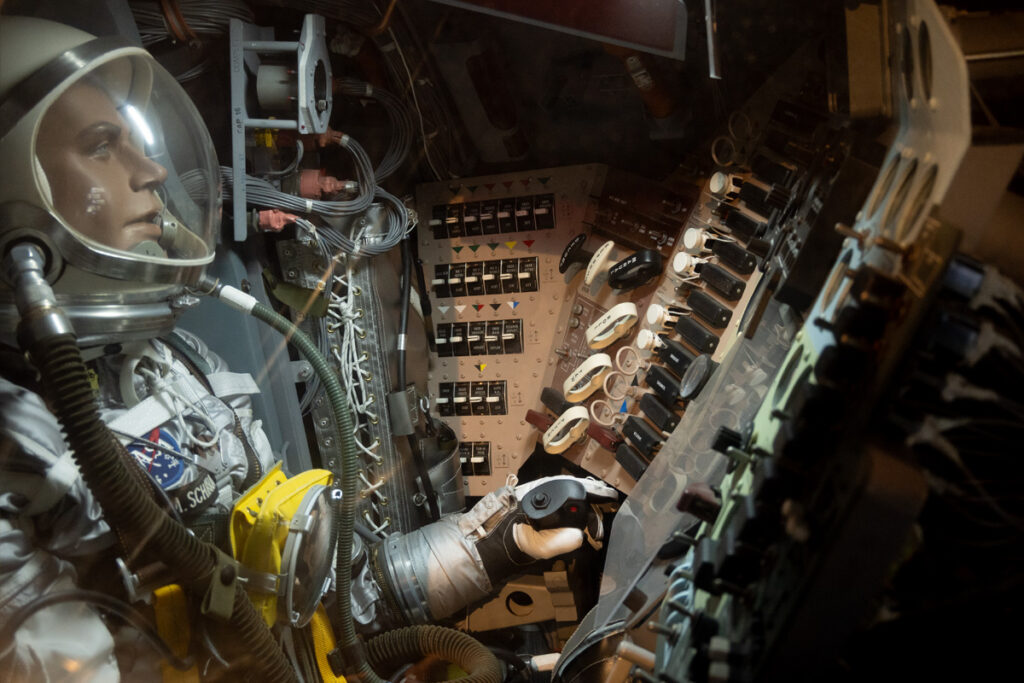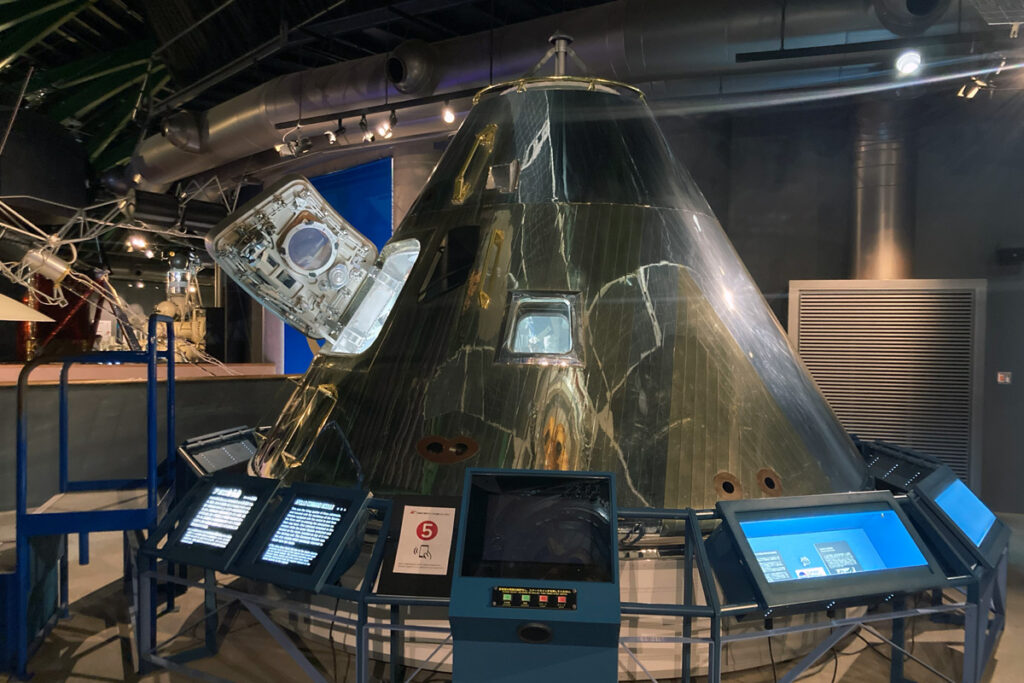 シアターを出て1フロア下の宇宙科学展示室へ向かうとこれが圧巻です。何と言いますか「流石本物」です。全てが違います。重量感、細部の作り、質感とどれを取っても凄い。情報量が膨大です。本や映像で何度も見て知識としては知っていましたが、宇宙船の大きさ一つとっても全く違いました。マーキュリー宇宙船は思ったより小さかったし、アポロの月面着陸船は思っていたより遥かに大きかったです。あの大きさの宇宙船を打ち上げたサターンVの大きさにも納得がいきます。