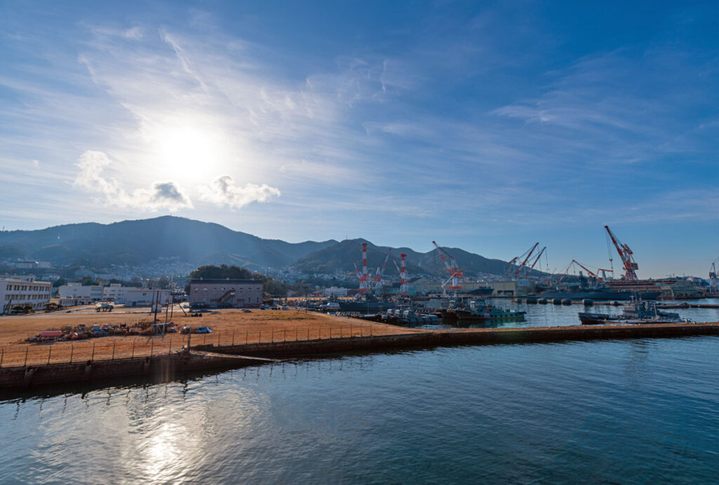 呉に宿泊しての2日目。本日は呉といえばお馴染みの場所と潜水艦カレーをしっかりと味わって、帰路の時間ギリギリまでウロウロしてまいりました。下の写真は呉港への陸橋から撮影した一枚。左手は海上自衛隊の施設で右側はジャパンマリンユナイテッドのドックです。そしてこのドックは戦艦大和が造られた場所でもあります。